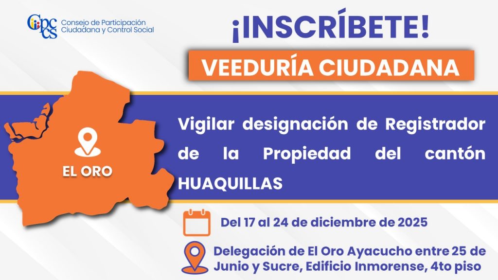 Veeduría Ciudadana para vigilar la designación del Registrador de la Propiedad del cantón Huaquillas
