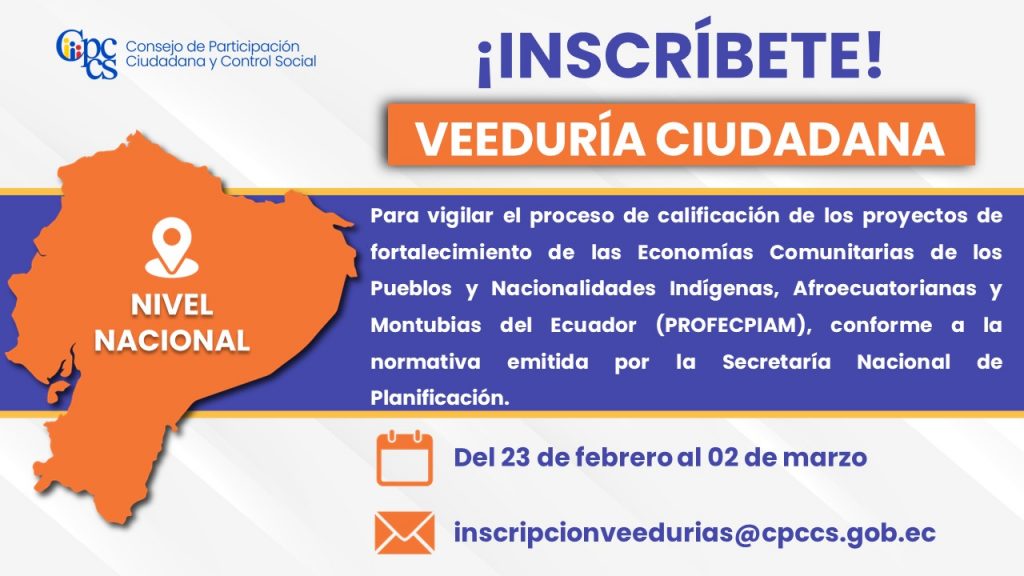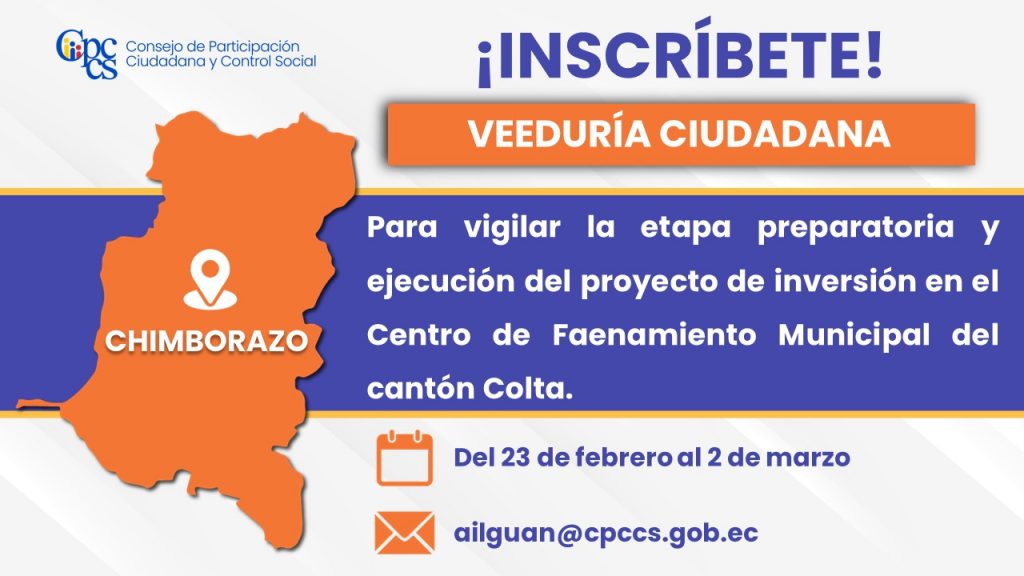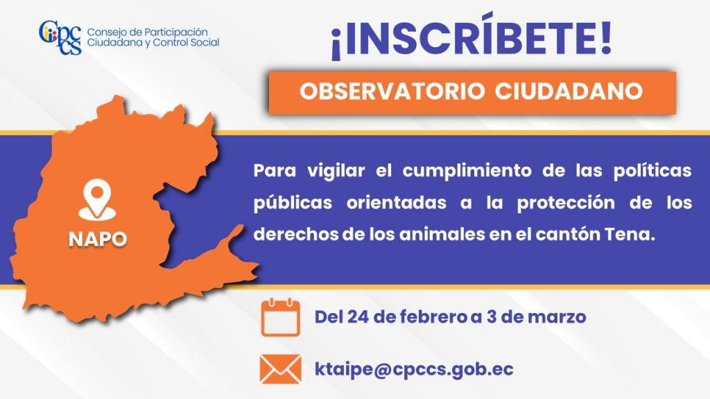 Quito, 24 de febrero de 2026 Boletín de Prensa Nro. 1212 El CPCCS convoca al Observatorio Ciudadano para la protección de los derechos animales en Tena El Consejo de Participación Ciudadana y Control Social (CPCCS) invita a la ciudadanía a integrarse al Observatorio Ciudadano, que tendrá como objetivo realizar el seguimiento y cumplimiento de las [...]