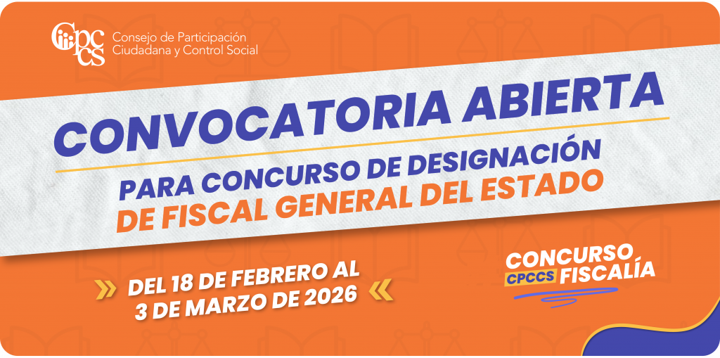 Quito, 13 de febrero de 2026 Boletín de Prensa Nro. 1203 Del 18 de febrero al 3 de marzo de 2026 los ciudadanos pueden postular al concurso para designar Fiscal General del Estado El Consejo de Participación Ciudadana y Control Social (CPCCS), convoca a la ciudadanía a participar en el concurso público de méritos y […]