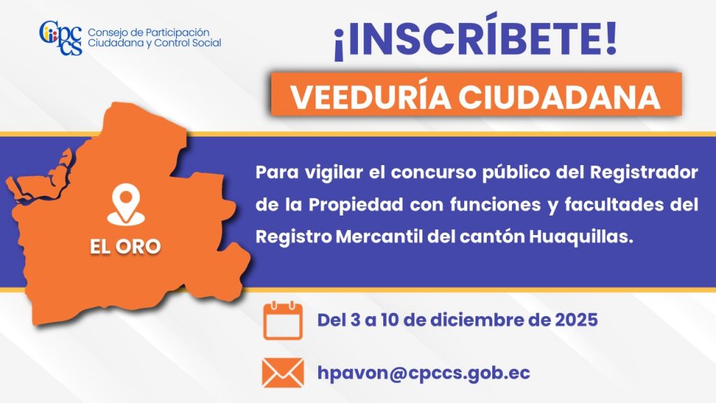 Quito, 03 de diciembre de 2025 Boletín de Prensa Nro. 1123 Nuevos convenios de cooperación, presentación de iniciativas educativas y reconocimientos se entregan durante la sesión del CPCCS en homenaje a Quito El Pleno del Consejo de Participación Ciudadana y Control Social (CPCCS) realizó la Sesión Ordinaria Nro. 46, en homenaje a los 491 años [...]