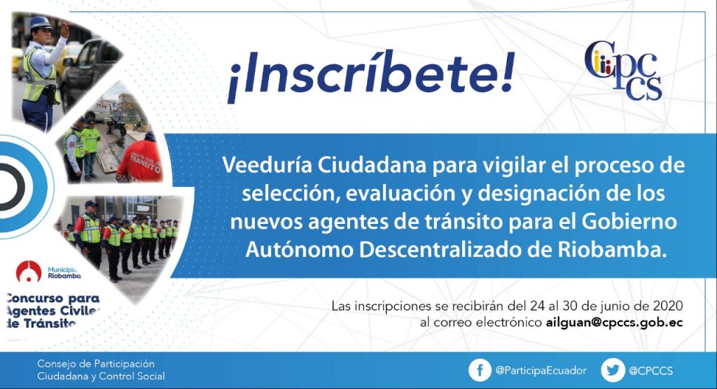 Quito, 24 de junio de 2020 Boletín de Prensa Nro. 285 Cinco nuevas Veedurías Ciudadanas vigilarán contrataciones y concursos públicos en varias provincias El Pleno del Consejo de Participación Ciudadana y Control Social, CPCCS, durante la Sesión Ordinaria No. 039 de este 24 de junio, aprobó la conformación de cinco veedurías ciudadanas, con los siguientes [...]