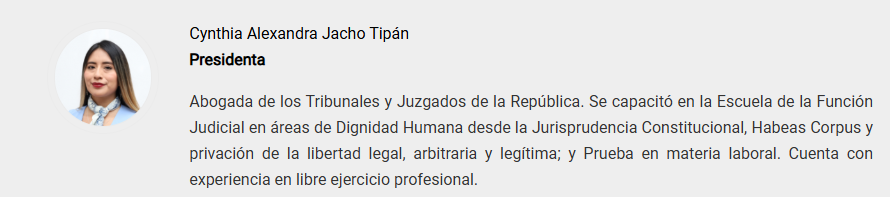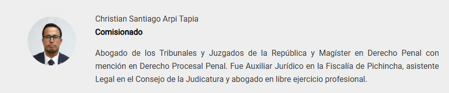 | 5 | Judicial | Natalia de Jesús Guarnizo Condolo | Santiago Cristóbal Ribadeneira Villacrés |