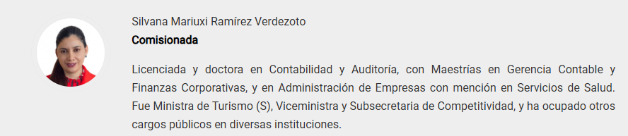 | 2 | Legislativa | Silvana Mariuxi Ramírez Verdezoto | Solicitado a la Función Lesgislativa |
