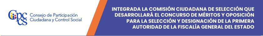 El Consejo de Participación Ciudadana y Control Social pone en conocimiento de la ciudadanía los nombres de los integrantes de la Comisión Ciudadana de Selección que desarrollará el concurso de méritos y oposición para la selección y designación de la primera autoridad de la Fiscalía General del Estado.