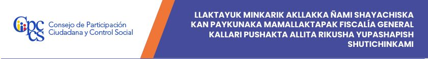Ecuador Mamallaktapak Runa Tantanakuymanta Ñawinchinamantapash Hatun Tantanakuyka tukuy runakunaman riksichin Llaktayuk Minkarik Akllak ukupi pi shutikuna sakirishkakunata, paykunaka Mamallaktapak Fiscalía General kallari pushakta allita rikusha yupasha akllasha shutichinkami.